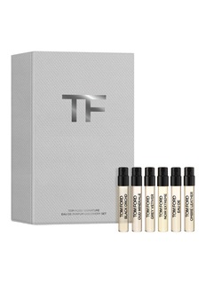 Discover timeless Signature scents with modern impact in travel-ready discovery sizes: Black Orchid, a floral amber scent; Noir Extreme, a sensuous woody amber; Ombré Leather, a warm floral leather; Eau de Soleil Blanc, a solar amber scent; Oud Minérale; Grey Vetiver, a woody fougère.