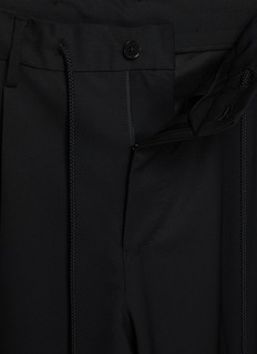 Tailored from Tomorrowland’s bi-stretch wool-blend gabardine, these easy slacks are defined by a clean tapered silhouette and a drawstring-adjusted waistband that offers ease without compromising refinement. In classic black, they transition effortlessly between polished workwear and elevated casual pairings.