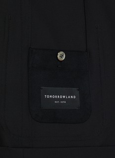 Crafted from Tomorrowland’s bi-stretch wool-blend gabardine, this single-breasted blazer delivers a refined, contemporary sharpness in pure black. Its notch lapel and rounded patch pockets introduce a relaxed sophistication, making it an effortless layer for clean tailoring or understated, minimalist ensembles.