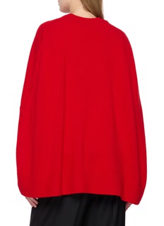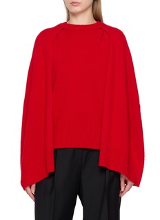 The Cape Sweater by TOTEME redefines modern knitwear with its bold red hue and oversized silhouette, offering both warmth and effortless style. The dramatic dropped shoulders and voluminous cape sleeves create a striking yet cosy statement.
