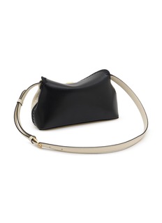 This Toteme bag is a masterclass in understated elegance, crafted from smooth leather in a contrasting palette of black and cream. Its unique half-moon silhouette is both modern and timeless, accented with delicate pleat detailing and a refined gold-tone clasp that enhances its sophisticated appeal. The adjustable strap allows for versatile styling, making it perfect for both shoulder and crossbody wear.