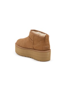 UGG's ultra-mini platform boots combine signature shearling lining with a bold chunky sole for contemporary elevation. The low-profile silhouette features iconic whipstitch detailing and a convenient pull tab, while the exaggerated platform adds fashion-forward edge. A statement cold-weather essential that reimagines classic UGG comfort with modern attitude.