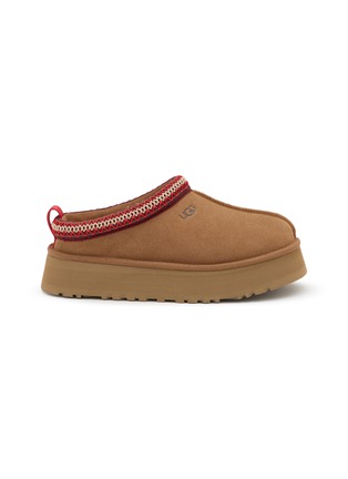 UGG's platform slippers showcase signature whipstitch detailing along the collar and a discreet logo embossing. The slip-on mule silhouette with plush shearling lining offers instant warmth, while the chunky traction sole provides indoor-outdoor versatility. A contemporary loungewear essential that delivers iconic UGG comfort with elevated style.