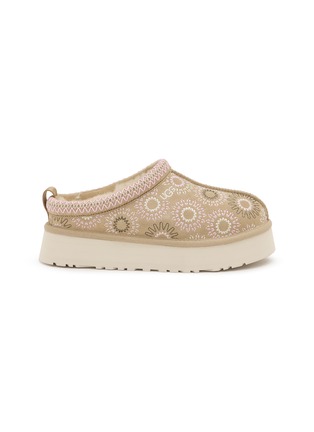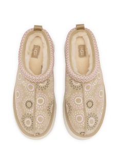 UGG's embroidered platform mules showcase intricate sunburst stitching across the upper for artisanal appeal. The slip-on design with plush shearling lining offers instant cozy comfort, while the chunky traction sole adds modern elevation. A luxe loungewear essential that effortlessly transitions from indoor relaxation to outdoor errands.