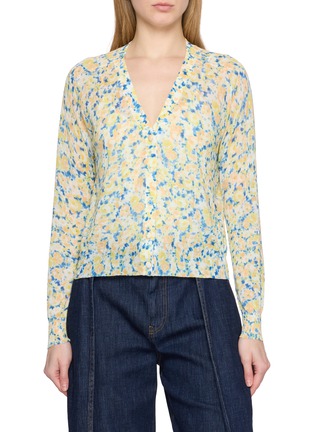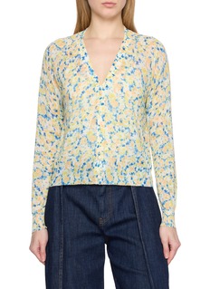 A refined layer shaped by Ulla Johnson's artistic elegance, this cardigan is crafted with a vibrant floral print, classic button-up front and V-neckline. This piece layers softly over tailored or casual looks, a luxury piece for transitional, everyday wear.