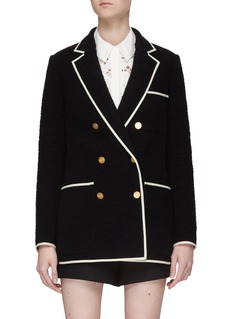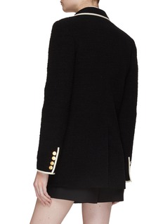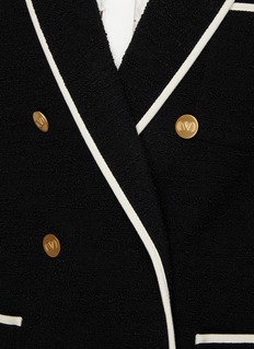Valentino Garavani's contrast trim tweed blazer oozes femininity and sophistication. Featuring gold engraved buttons, contrast trim, and expert cutting, this piece is timeless yet modern.