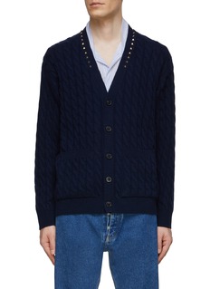 Valentino ventures into everyday essentials and presents this cardigan punctuated by the House’s signature silver-toned studs, thoughtfully designed to push through seasons and trends.