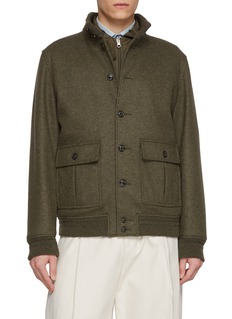 Discover the elegance of Valstar's wool jacket in a sophisticated olive green. This versatile piece is designed with a high collar and a zip under a button placket to shield against the chill. Crafted from premium wool, it offers both warmth and durability. The jacket is equipped with ample patch pockets for functionality and is finished with ribbed trims to ensure a snug fit.