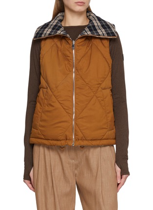 A modern layering statement, this reversible gilet from Varley brings texture and versatility into focus. One side features diamond quilting for a clean, utilitarian finish, while the reverse reveals brushed flannel checks for a softer, directional mood—ideal over knits and sweats through the colder months.