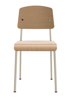 Jean Prouvé’s 1934/1950 Standard chair exemplifies his belief that design must serve structure. In this edition, the warm natural oak seat contrasts with a Blanc Écru steel base, softening its industrial clarity with a refined lightness. A versatile classic for contemporary interiors.