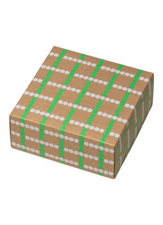 Presenting a whimsical and elegant gift box from WARMGREY TAIL, adorned with a playful blossoming check. The vivid green and white colours add a vibrant charm, making it as delightful to unwrap. Perfect for gifting with style this holiday season.
