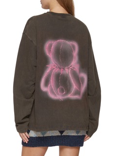 This WE11DONE top transforms the classic long-sleeve tee with playful surrealism. Crafted in washed cotton for a vintage feel, it showcases an airbrushed teddy motif glowing in neon pink, complete with a heart pendant and spiked collar. The oversized cut adds an effortless edge, perfect for layering with skirts or tailoring for a subversive twist.