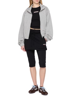WE11DONE channels a sporty edge with streetwear flair with this skirt. Featuring a sleek black palette and minimalist silhouette, this piece is enhanced by its raglan sleeve and logo patch.