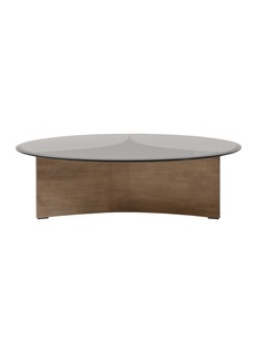 A study in contrast, this coffee table reveals its character through light, reflection and form. Designed by Toan Nguyen, the translucent glass surface floats above a curved steel base, allowing the sculptural geometry beneath to softly emerge within modern living settings.