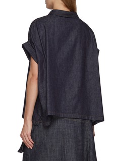 Relaxed structure meets denim discipline in this short-sleeved shirt, cut from pure cotton with a softly boxy drape. Y’s amplifies utility through contrast stitching and rolled sleeves, creating a piece that slips effortlessly between tailoring and everyday ease—ideal over trousers or layered with tonal denim.