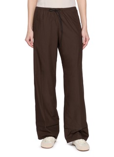 These Yves Salomon pants embody effortless sophistication with their rich brown hue and fluid silhouette. These pants are designed with a relaxed fit and an elasticated waist for a comfortable fit.