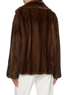 Radiating timeless luxury, this long-haired mink coat by Yves Salomon features a single-breasted button fastening, notch lapel, and a relaxed silhouette. This coat elegantly pairs with jeans for a refined yet casual winter look.