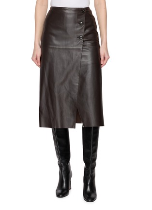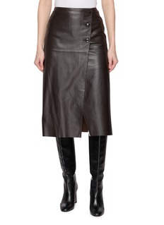 This Yves Salomon skirt embodies effortless sophistication, its rich, deep brown hue and asymmetrical wrap design creating a bold, sculptural silhouette. The button accents and fluid drape make it a versatile statement piece, perfect for elevating both day and evening looks.
