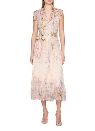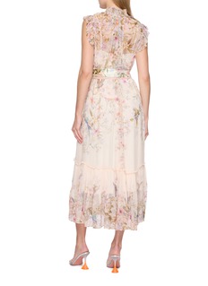 Ethereal elegance takes form in this Zimmermann Rebellion Flutter Dress, where intricate florals cascade from the neck down to the skirt, transforming this dress into a work of art. The gathered neckline and flared skirt add a soft, flowing design that ensures effortless grace.